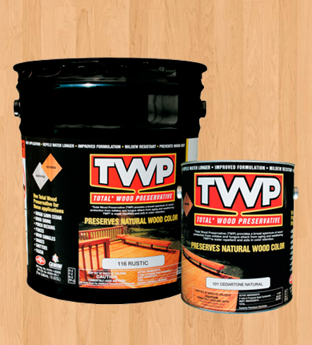 TWP es una combinación única de productos químicos que realza la belleza natural, la calidez y la integridad de la madera nueva e incluso la madera vieja puede ser restaurada a su color natural con la preparación adecuada de la superficie.