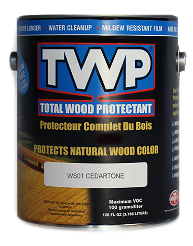 TWP® WS SERIES está disponible en 8 colores populares. TWP® 100 Clear no está diseñado para la retención de color y permitirá que la madera se vuelva gris naturalmente